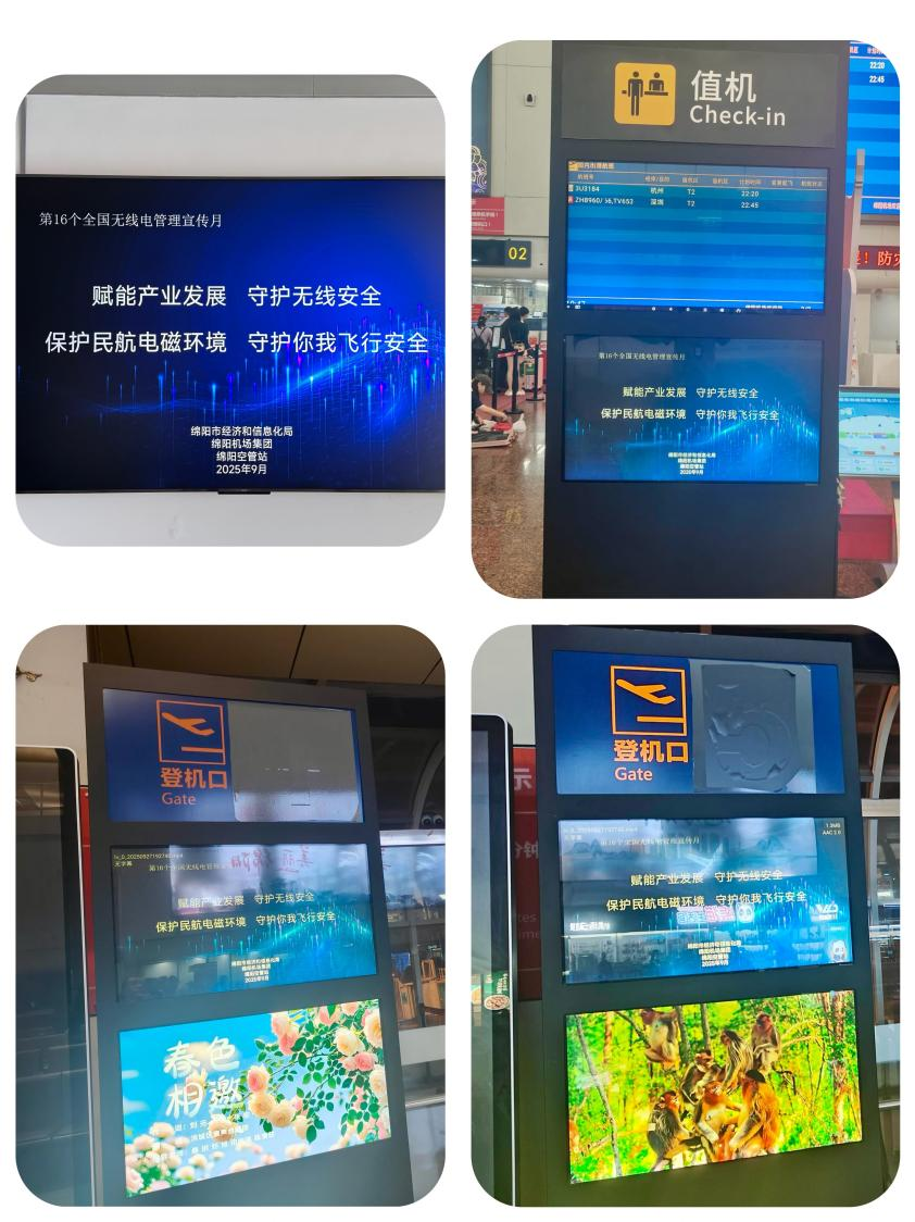 本网讯 杨夏 范黎明摄影报道:近日,空管站联合绵阳市经信局、绵阳机场(集团)有限公司在绵阳南郊机场及周边社区开展以“赋能产业发展 守护无线安全”、“保护民航电磁环境,守护你我飞行安全”为主题的无线电管理主题宣传活动。