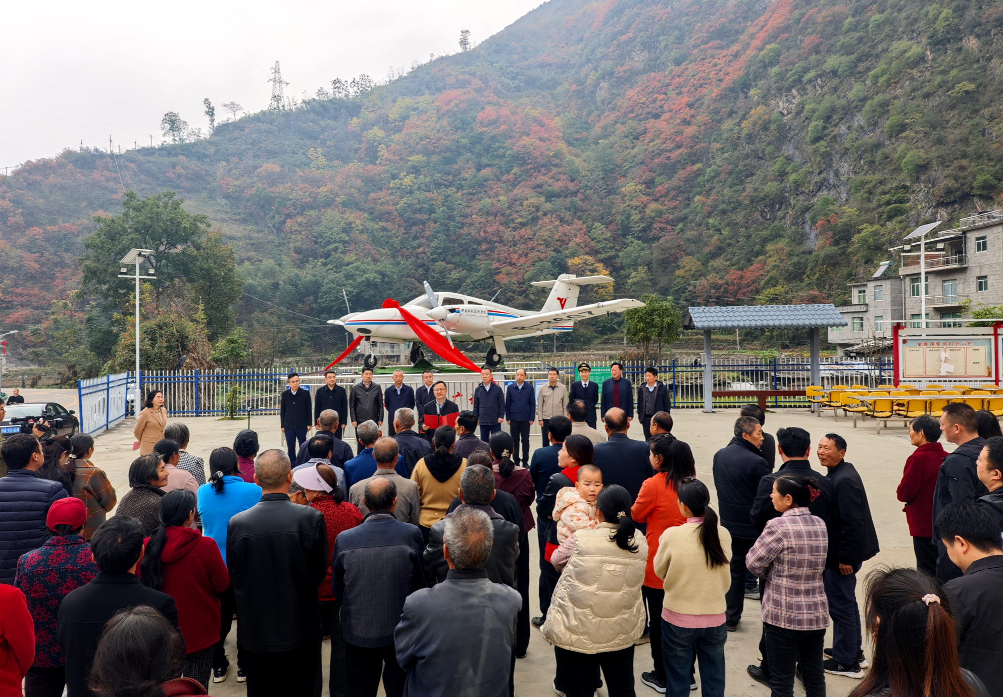 2025年10月,分院与金寨初级中学正式签署飞机拆卸、运输与组装服务合同。在机务工程部的积极协助下,10月29日,飞机部件顺利运抵校园;11月5日,全部组装工作圆满完成。次日,揭牌仪式在金寨镇张河村举行,旬阳市委副书记常彬等嘉宾共同见证了这一时刻。如今,这架静静矗立于校园的飞机,已成为张河村深化“千万工程”建设的重要展示窗口,未来将打造为融航空科普、文化体验、乡村研学于一体的多功能平台。