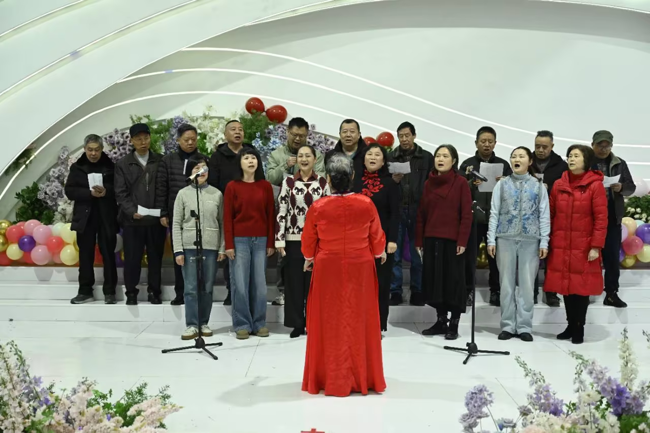 随后进行的文艺演出庄重而热烈,老同志们以多种艺术形式抒发了对民航事业的深厚情感。赵仁旺、高跃进、王秀岚等五位同志带来的合诵《新年你好》,声情并茂,传递出对岁月馈赠的感恩与对美好未来的向往;李向臣、郑晓东现场挥毫泼墨,创作书画佳作,笔墨之间尽显文化底蕴与家国情怀;王学增、宋石军等四人表演的三句半《赞赞咱分院》,语言鲜活、节奏明快,生动勾勒出分院的发展历程与建设成就;刘芳、李素红等三人的合唱《相遇》旋律婉转,唱响了携手并肩的深厚情谊;刘俊表演的舞蹈《关山酒》刚健豪迈、形神兼备,展现了分院人昂扬的精神风貌;龙成明朗诵的《我心中的中飞院》真挚动人,致敬了代代相传的民航育人使命。最后,离退休第三党支部全体成员齐声高唱《大中国》,歌声激昂、气势如虹,将全场气氛推向高潮。