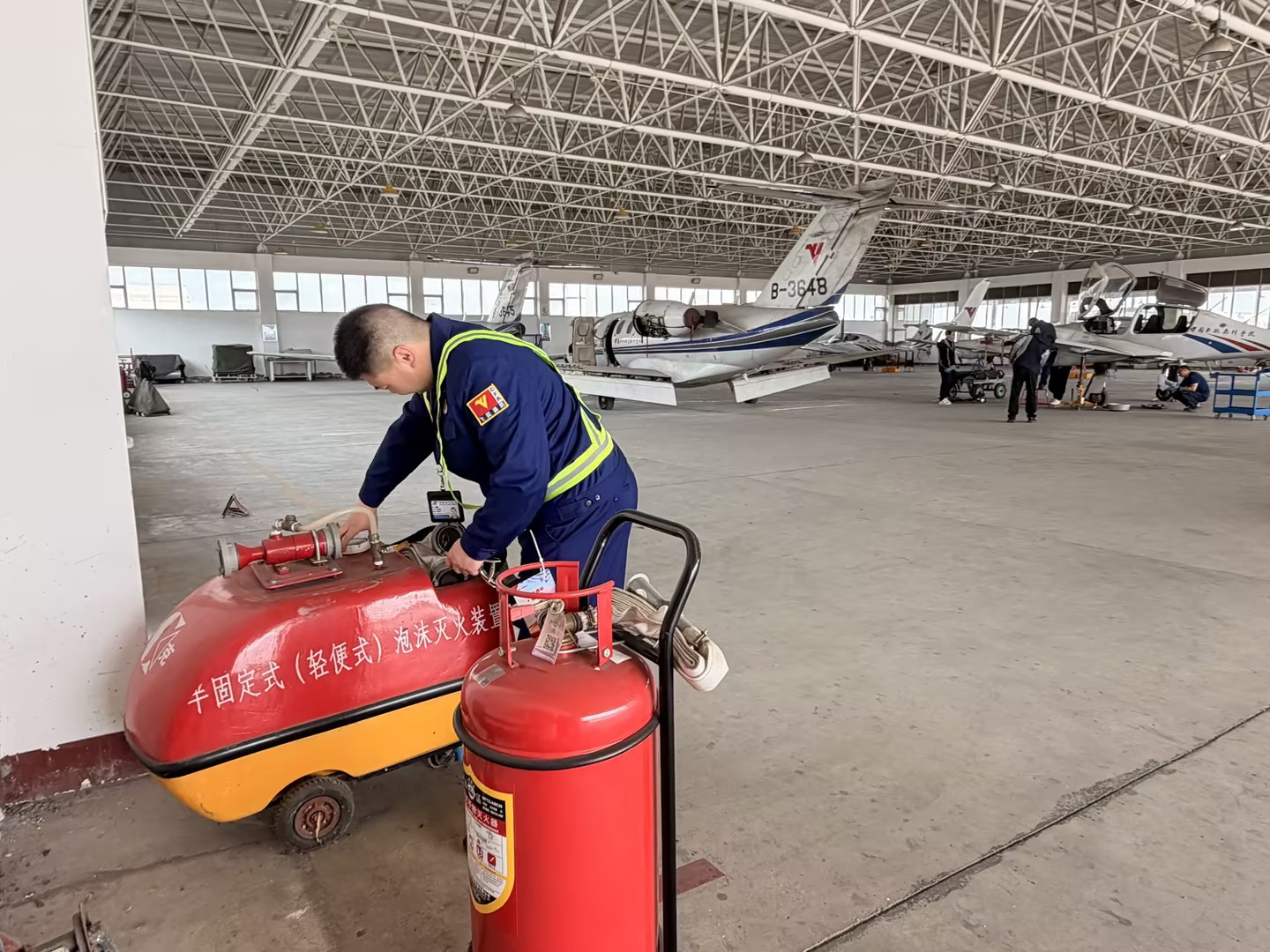 三是设施维护保运转。组织人员对分院院区、机库、二次雷达站等重点区域消防报警系统、消火栓、灭火器等消防设施设备进行全面检查维护,保障消防设施设备时刻处于良好待命状态。