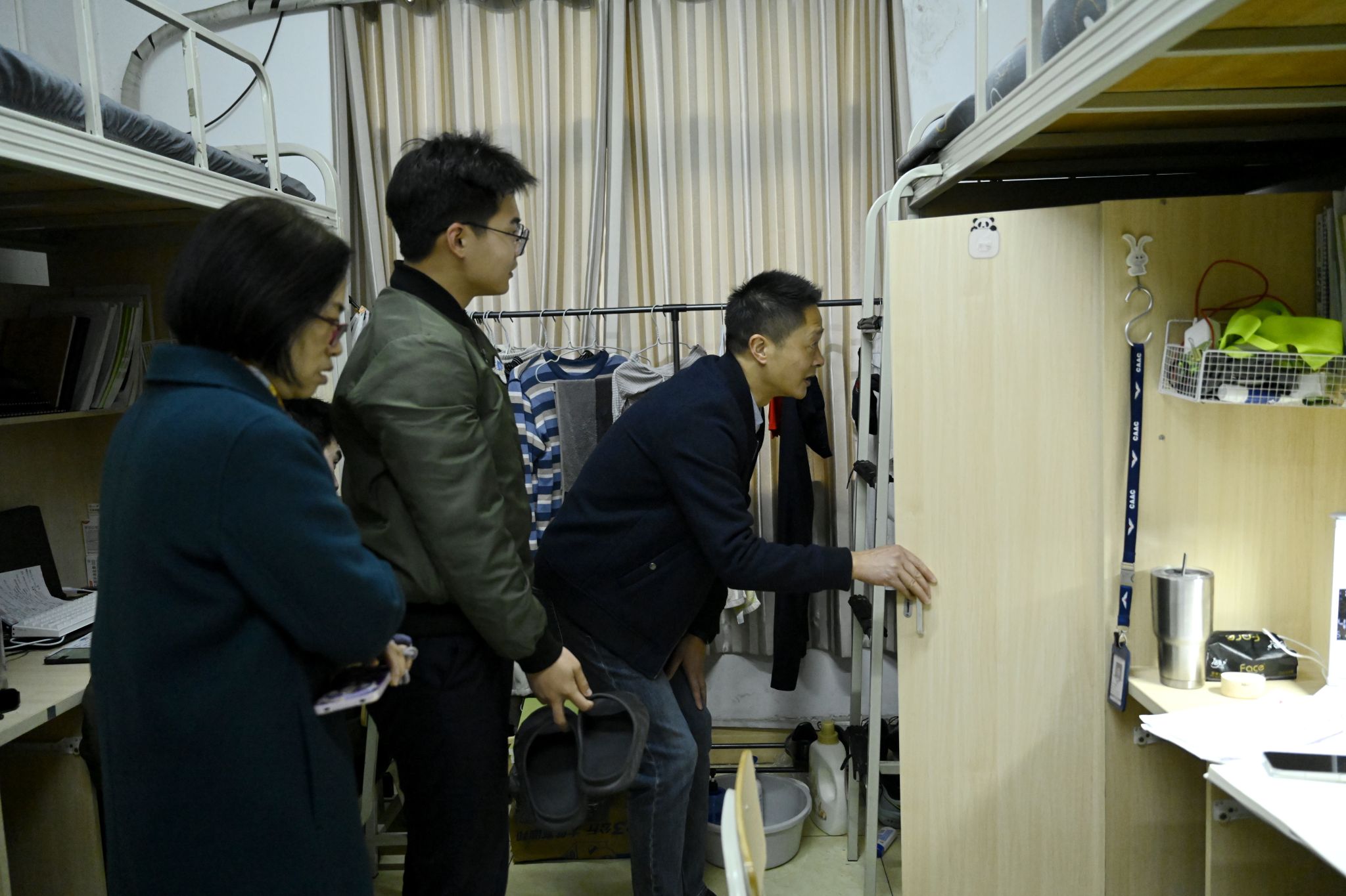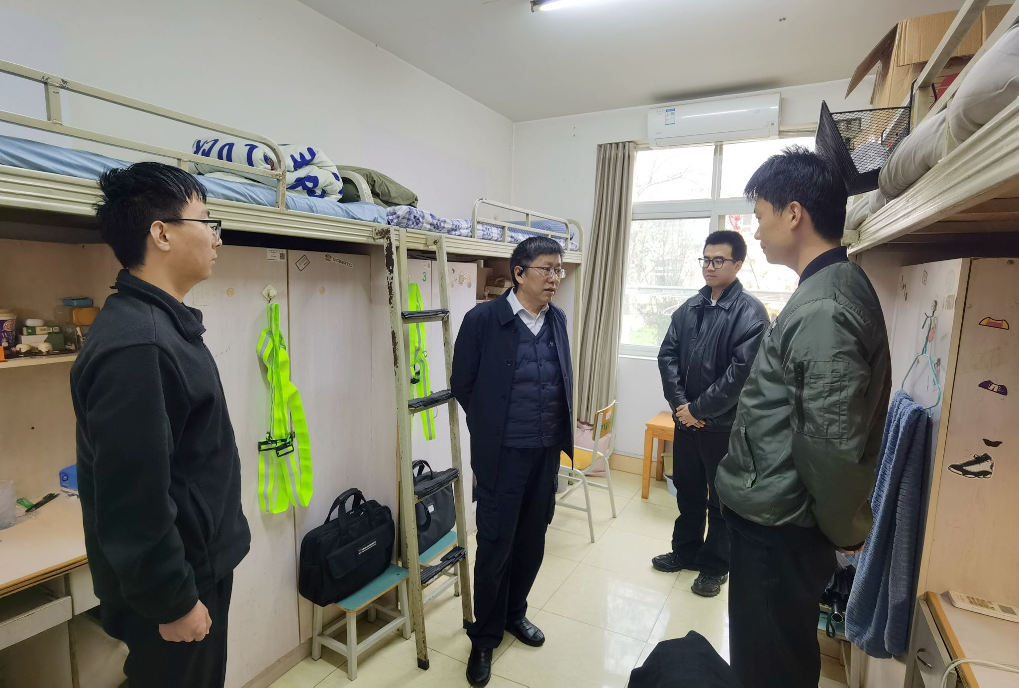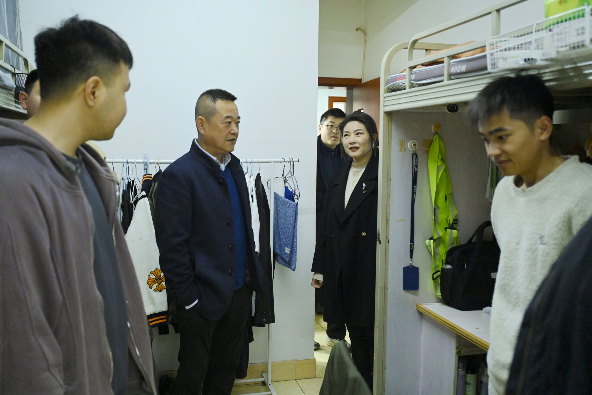 本网讯 张晗摄影报道:为深入推进飞行员队伍建设,筑牢开学校园安全防线,按照分院“飞行示范周”统一部署,3月5日至6日,分院党委书记李学友、副院长姚刚带队,党政办公室、飞行大队、高教中心、派出所、机场科等相关单位组成专项检查组,深入教师和学生公寓,开展内务与安全专项检查。检查覆盖320间公寓房间,逐间走、逐间查,确保不漏一间、不落一项。