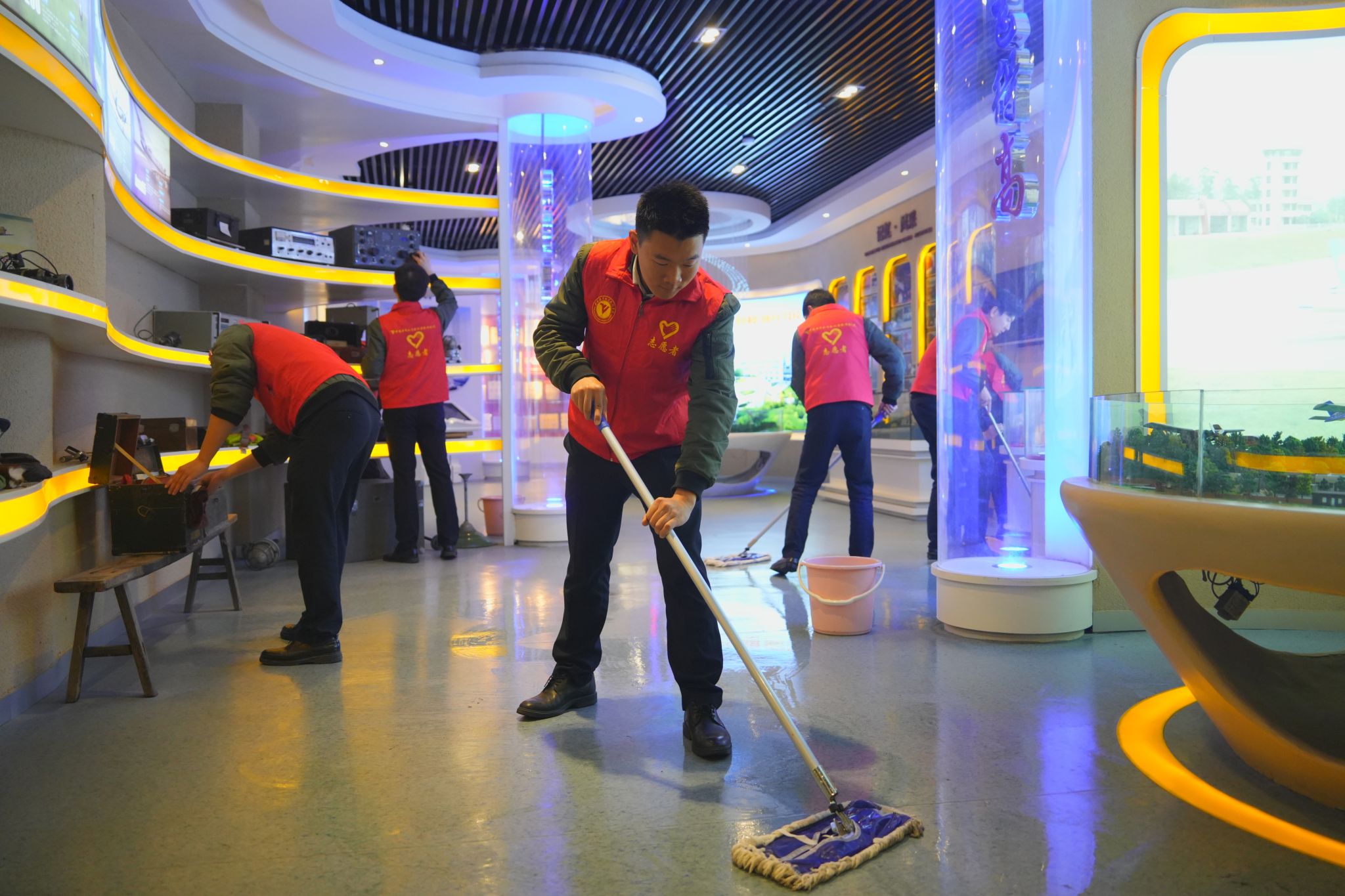 志愿者们以细致劳动擦拭展柜、清洁地面,在躬行实践中体悟奉献真谛。指尖轻触泛黄的老照片,同学们仿佛与历史对话:“擦拭的是灰尘,触摸的是红色脉搏”,更深刻体悟到分院薪火相传的初心与坚守。这场特别的“劳动课”,不仅让陈列室焕然一新,更将爱校荣校的情感内化于心,实现了志愿服务与思政育人的同频共振。