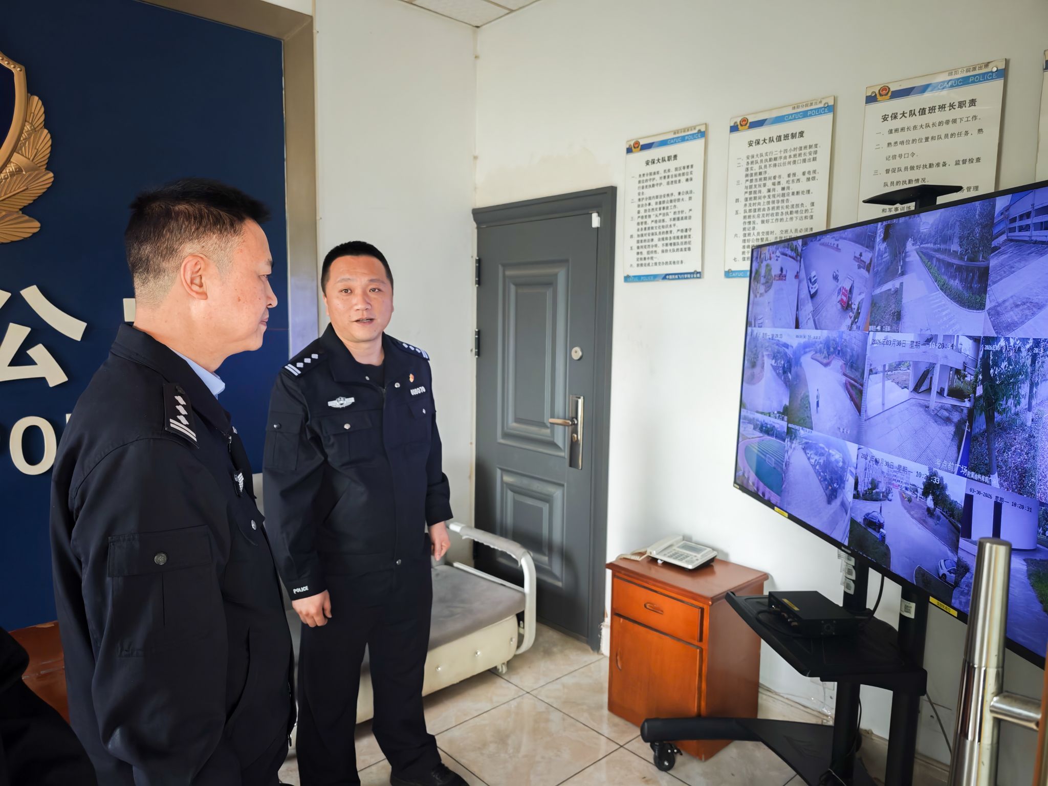 调研组实地检查了派出所值班备勤、警力配置及应急处置流程,并在监控室重点调阅了重点区域实时画面,强调要持续提升“人防+技防”协同效能。随后,张欲与分院副院长姚刚围绕“一院(队)一警”机制运行、空防管理、治安防控和消防安全等议题展开座谈,派出所所长、教导员分别向张欲汇报了业务和党建工作开展情况。会后,张欲对全所民警进行了谈心交流。