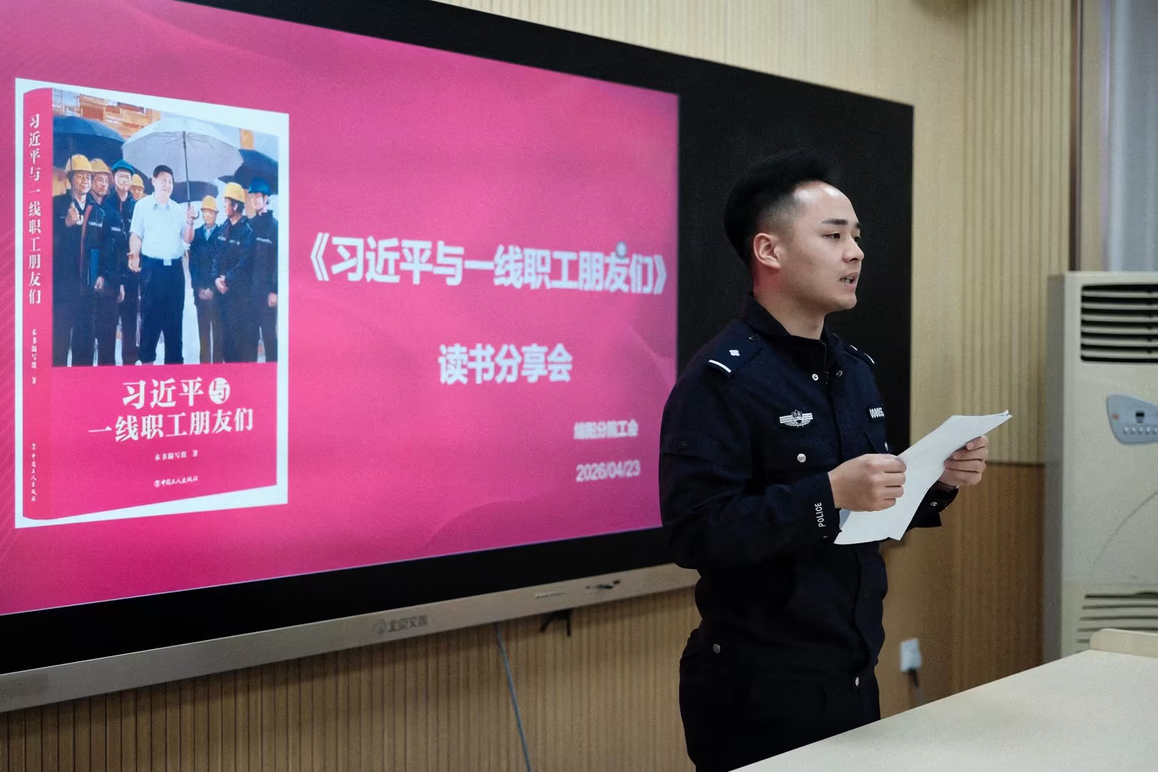 本网讯 眭炜/文 陈泓树/图 报道:4月23日是世界读书日,上午9时30分,分院工会在机关楼216教室举办《习近平与一线职工朋友们》专题读书分享会。来自飞行大队、机务、空管、机保部、派出所及机关的18名职工代表齐聚一堂,共读领袖故事、共悟为民情怀、共话使命担当,活动氛围真挚热烈、务实走心。